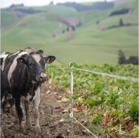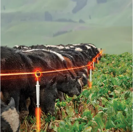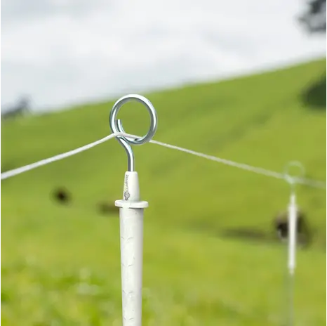 The electrified Ring-Top™ insulator and posts prevent animals from knocking over the posts. The fence wire puts tension on the above-ground part of the post, which is isolated from the ground by the heavy-duty base.