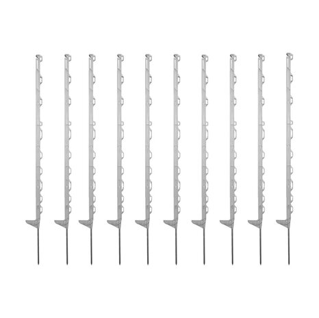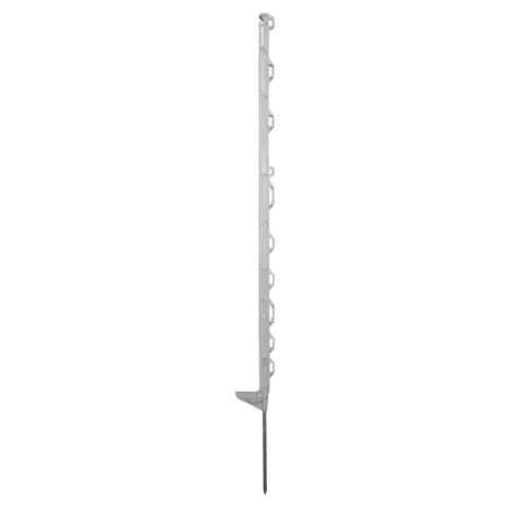 The post includes 11 differently designed, ultra-stable eyelets for ribbons, ropes, and strands, along with two top insulators to utilise the full post length. Numbered eyelets make fence installation easier, particularly for large pastures. A sturdy, extra-thick 23 cm galvanised ground nail (9 mm diameter) is injected into each post, ensuring a secure and long-lasting stand.