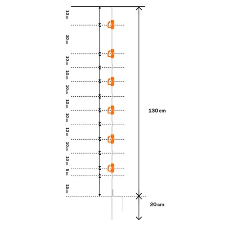 A multi-wire stake with 6 height adjustable fixing points. This stake is ideal for different applications with height adjustable fixing points.