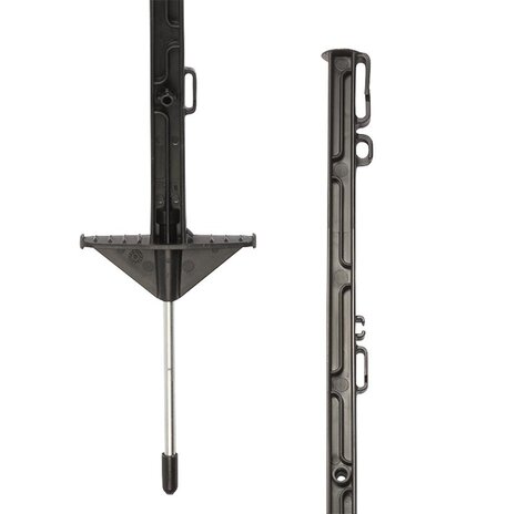 The Pulsara plastic post (1.05 m) features 10 practical eyelets (wire holders) at various heights, making it suitable for all common types of strands, ropes, and tape. The eyelets are designed to securely hold your conductor material, ensuring it stays in place. The arrangement, height, and number of eyelets are optimized to create a secure fence for a variety of animal species.