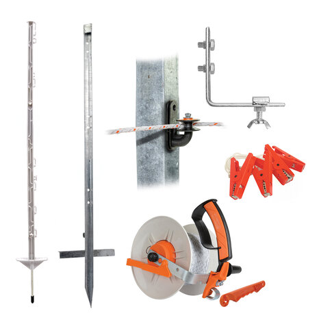 Three reel systems are the ideal solution when you are in need of a temporary electric fence. This set is designed for fences up-to 500 meter. All included items are carefully selected for their high quality.