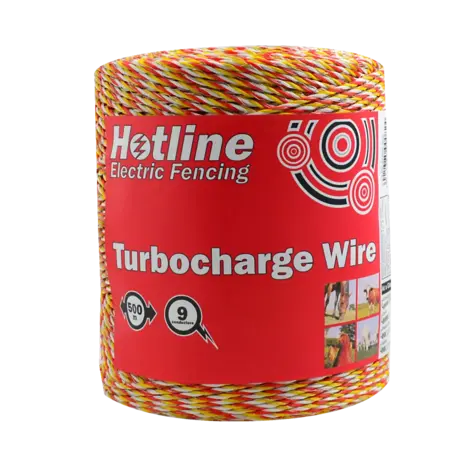Designed for demanding electric fencing systems, the Hotline Turbocharge 9-Strand Electro Wire (500m) offers extended coverage with exceptional conductivity and strength. Ideal for larger installations and long-distance runs over 1,000 metres, it’s especially well-suited to three-line electric fences for sheep.