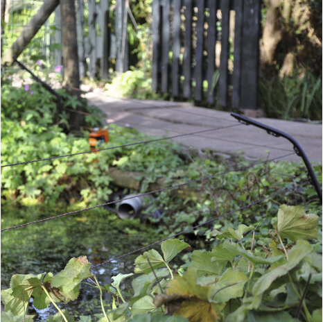 A compact, curved Gallagher plastic post to protect your pond from herons or cats. It is suitable for mobile fences and ideal for setting up on a pond. The curvature provides additional protection against overgrown plants. The post is ideal for use in combination with plastic wire and is easy to install. The maximum fence height is 50 cm.