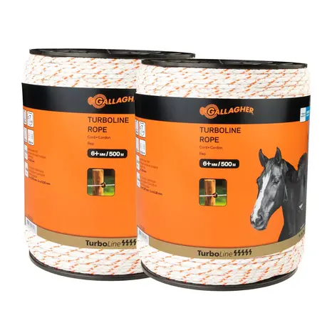 The Turboline pasture fence rope from Gallagher is suitable for long, permanent fences. The 8 stainless steel conductors + 3 tinned copper conductors make this rope universally applicable, very robust and durable. Due to the soft-touch weave structure of TurboLine-Cord pasture fence rope, it does not stretch. This results in a 30 % longer service life. The high-quality workmanship guarantees a long-lasting and robust fence. The rope is ideal for fencing in horses, ponies, cattle and deer.