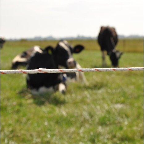 The Gallagher pasture fence strand TurboLine Vidoflex 9 has been tried and tested for years. 6 stainless steel wires (0.15 mm), 24 polyethylene wires (0.25 mm) and 3 tinned copper wires (0.25 mm) ensure a reliable current flow. This results in 40 times better conductivity than e.g. with standard stranded wires. This Vidoflex 9 TurboLine Plus version is 50 % more tear-resistant, does not stretch and is highly visible. Easy to wind, making it ideal for use with a reel. The strand is suitable for long, mobile fencing for e.g. cattle, sheep, goats and deer.