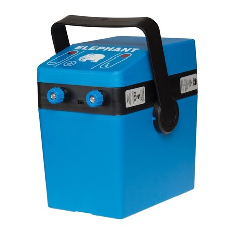 A very powerful battery-powered energiser designed for smaller enclosures. Suitable for cattle, horses, and outdoor pigs. It can also be operated directly with a 12V wet-cell (rechargeable) battery, and the 12V battery connection cables are included.