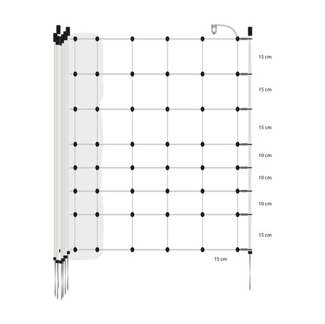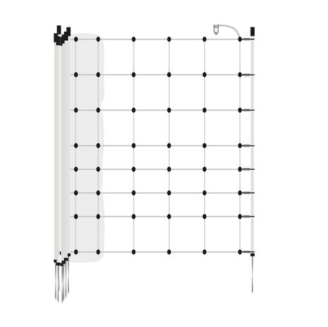 This 50 m electrifiable net includes 14 green plastic posts with single metal spikes for easy anchoring. Additional vertical struts every 30 cm act as extra supports, providing excellent stability.