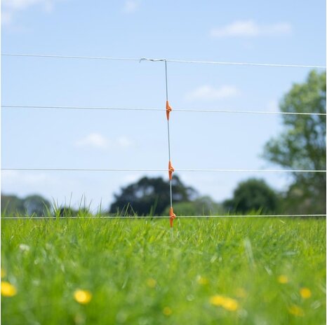The Line Post Dropper is a floating post that keeps the fencing between two posts. It is attached between two line posts and keeps the fence wire / tape at the correct height and tension. For example, for three posts on a fence with a length of 12 meters, you only need 2 when using the dropper. The line post dropper is cheaper than a regular Line Post, since it reduces the total costs for your fence.