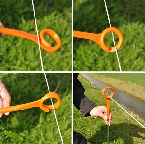 The ring-top post is easy to install thanks to its ergonomic and wide base. The wire holder is even more pleasant as it does not get caught in each other when you carry a whole bunch of these stakes.