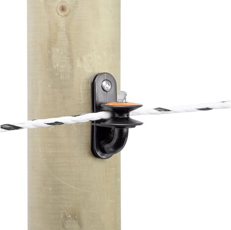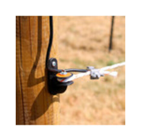 Plastic insulator for fitting cord or plastic wire to wooden corner posts. Easy to install and designed to ensure the wire does not slip off the roll. This insulator can also be fastened to an internal corner. Comes with a 2-year product warranty.