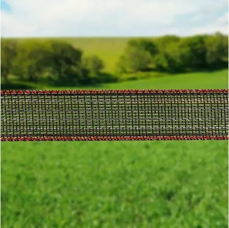 An extremely tear-resistant, highly conductive Gallagher TurboStar pasture fence tape (wide tape) for long, permanent horse fences. It offers excellent visibility and is particularly stable due to the reinforced edge. Guaranteed power supply along the entire length of the fence thanks to excellent conductivity. The unique composition ensures 40x better power conduction than standard pasture fence tape. The wide strip is equipped with 10 x 0.2 stainless steel conductors as well as 4 x 0.3 copper conductors (tinned). The UV-resistant plastic made of PE monofilaments and the high-quality workmanship guarantee a long-lasting and robust fence. Due to the colour (terra), the wide fence blends in very well with its surroundings. The orange colour stripes guarantee good visibility.