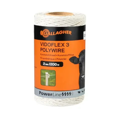 Gallagher's tried-and-tested fencing wire - PowerLine Vidoflex 3. The 6 stainless steel conductors (0.15 mm) ensure a safe current flow, so that small and easily herded animals can be fenced in safely. The colour (white) means it blends in very well with the natural environment. Easy to wind, so ideal for use with a reel. The strand is suitable for short, mobile fencing for e.g. cattle, sheep, goats and deer.