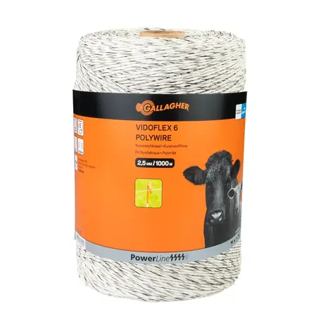 The Gallagher PowerLine Vidoflex 6 fencing wire has been tried and tested for years. 6 stainless steel wires (0.20 mm) and 18 polyethylene wires (0.30 mm) ensure a safe current flow so that small and easily herded animals can be fenced in safely. Easy to wind, so ideal for use with a reel. The strand is suitable for short, mobile fencing for e.g. cattle, sheep, goats and deer.
