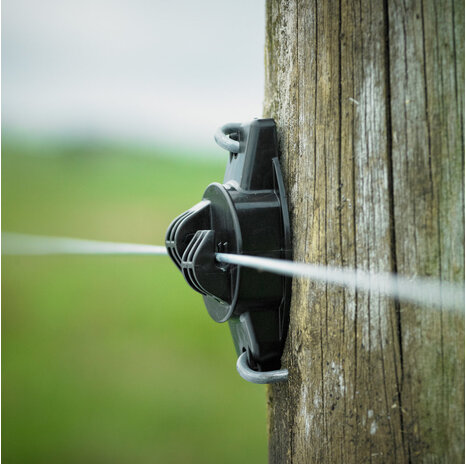 - High quality insulator for fitting plastic wire to wood posts