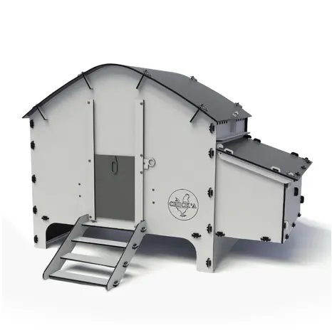 - Includes ramp, 1 manual door, 2 nesting boxes, 2 perches, maintenance flap