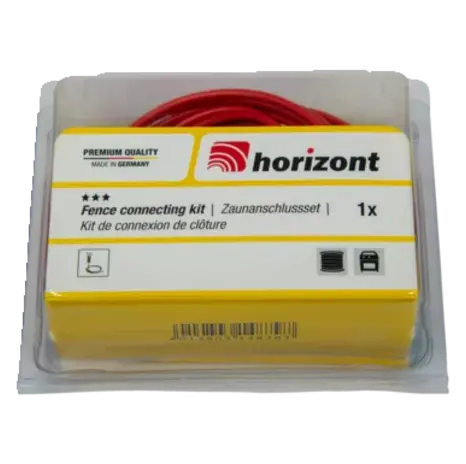 The Horizont Fence Connection Set provides a reliable and secure connection between your energiser and fence materials. Featuring stainless steel crocodile clips and a 150 cm reinforced cable, it ensures optimal conductivity for wires, strands, tapes up to 40 mm, ropes, and ground stakes.