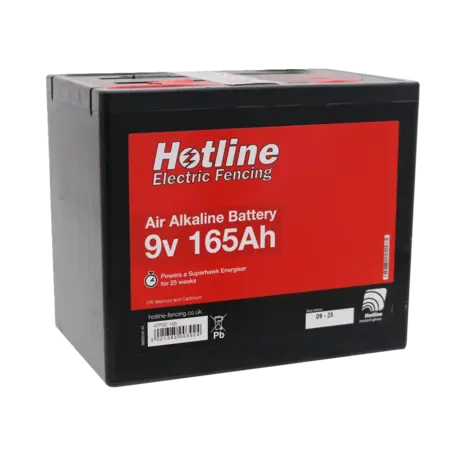 The Hotline 9V Air Alkaline Battery (165Ah) is a high-capacity, long-lasting power source designed for use with the Super Hawk energiser. Its high-voltage curve maintained throughout the entire service life ensures consistent, reliable performance—keeping your electric fencing system operating at peak efficiency.