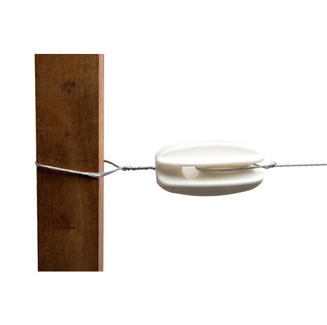 Simply use bailing wire through one end of the insulator to fix the insulator to the end post/s and then thread the fencing material through the other end of the insulator and secure using a relevant connector. Suitable for polywire, galvanised wire and rope up to 7mm.