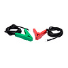 These are Earth and Live Cables with crocodile clips as included with new Hotline battery energisers. They are approx 1.2m (minimum 1m) in length and are suitable for all electric fencing connections, but specifically designed for connecting battery energisers from the earth terminal to the earth spike and live terminal to the fence line.