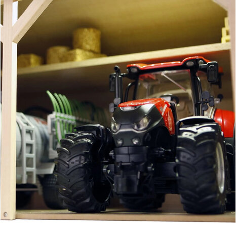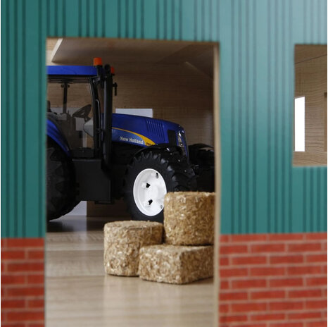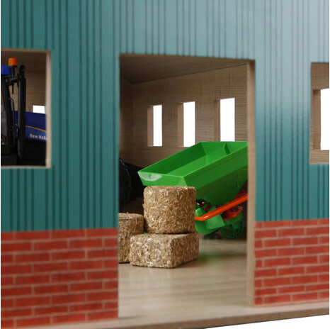 This highly detailed and lifelike tractor shed from Kids Globe is the best choice for providing parking space for toy tractors and other farm machinery. The shed, with a hinged roof section, is constructed at a scale of 1:16 and has ample space for 3 Bruder toy farm machines. This model is suitable for children aged 3 years and older. Please note that this tractor shed is delivered without vehicles and accessories.