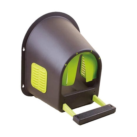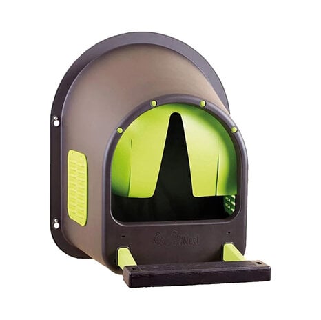 Inside, the nest provides a safe, dark, and comfortable space for hens to lay their eggs. Ventilation grilles ensure optimal air circulation, while a darkening curtain at the entrance further reduces light for a calm laying environment.