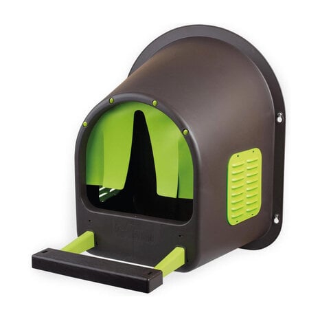 A small non-slip perch allows hens to enter easily, and the curved top prevents birds from roosting and soiling the surface. The open back design means the nest should be mounted against a wall—it can be securely fixed using the four pre-drilled holes and included screws.