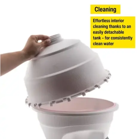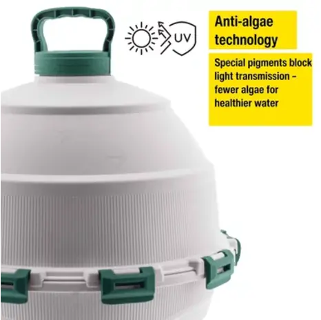 Its smart two-part tank design makes the drinker easier to transport and significantly simplifies cleaning, allowing you to easily access the interior of the container to maintain hygiene and ensure clean water at all times. Special anti-algae colour pigments reduce light penetration into the tank, helping to prevent algae growth and maintain better water quality.