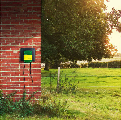 For animals that are used to moving behind a fence, the unit does not need to deliver a current pulse as often (half power). Pulsara's PC1300 has a special function which reduces the frequency of pulses on the fence. This reduces the power consumption of the battery and prolongs its life. The unit is very easy to connect and is optimally protected against theft due to its dark protective colour.