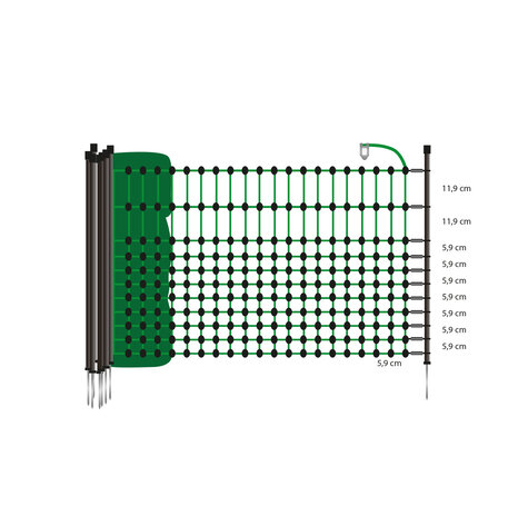 The electronic net can be used for a wide variety of areas, e.g. in the garden or on camping holidays. The narrow mesh size in the lower part of the electric fence net makes it ideal for keeping in or out small animals, such as rabbits and hares.