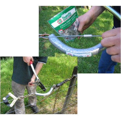 Fencing wire always has some stretch and using the EzeMate chain diverter alongside a Chain Strainer and Strainrite crimp sleeves lets you take advantage of this, giving you some overlap to work with and more easily create really strong and long lasting, low cost wire joints.