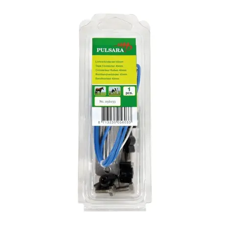 The Pulsara Tape Connector Kit 40mm (1) is a high-quality kit designed for linking together two rows of tape up to 40mm in width. This kit includes a 0.9m cable and wing nuts, making it easy to connect and secure your tapes. With this kit, you can ensure that your tapes are securely fastened, providing maximum strength and stability for your fencing needs. As a part of the premium quality Pulsara brand, you can trust that this Tape Connector Kit will meet your expectations. The Pulsara product range offers a large selection of energisers, batteries, conductor material, insulators, and accessories, all at an unbeatable price to quality ratio. Choose Pulsara for all your fencing supplies.